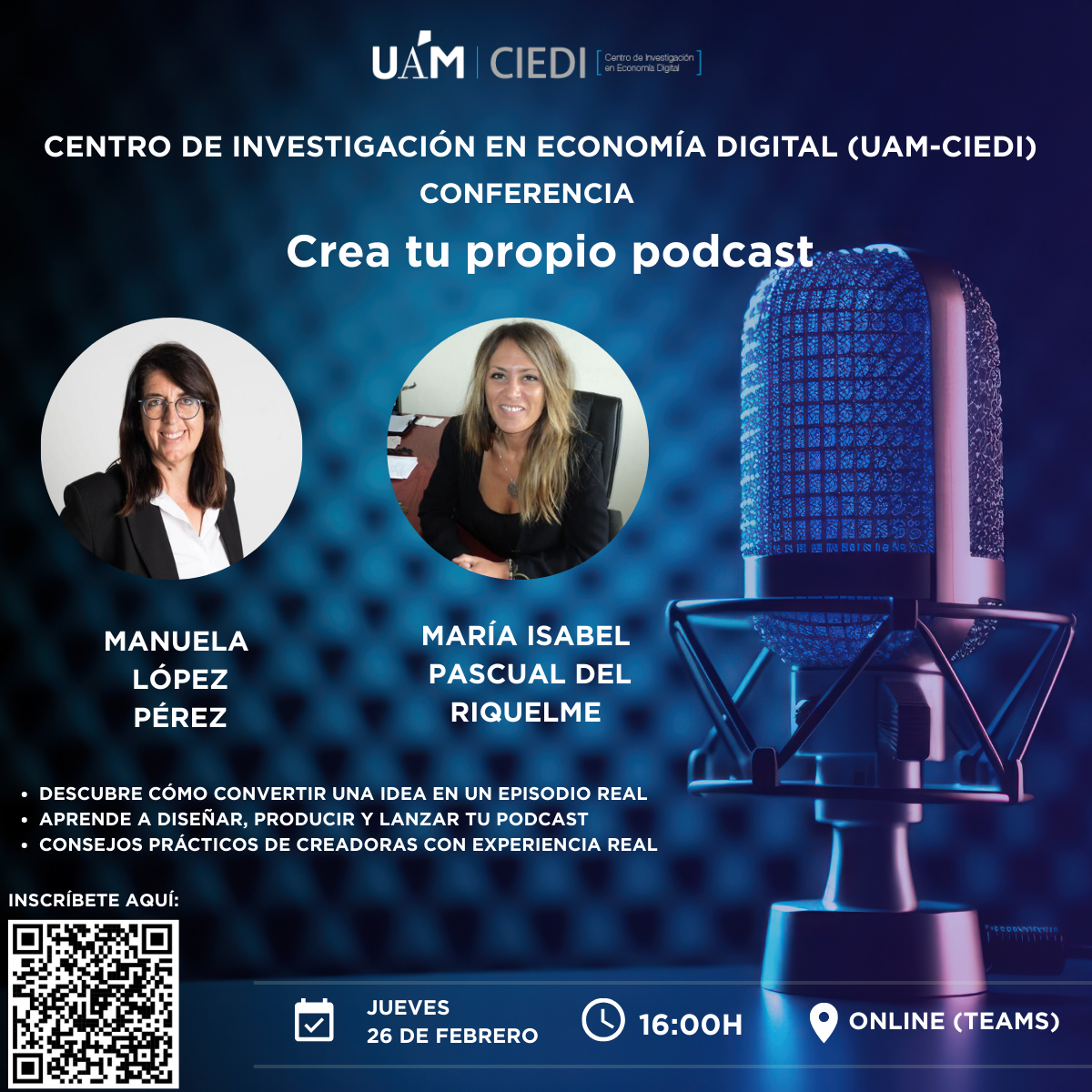 Esta conferencia está diseñada para todas aquellas personas interesadas en aprender cómo transformar una idea en un episodio real, adquiriendo conocimientos prácticos sobre diseño, producción y lanzamiento de un podcast.